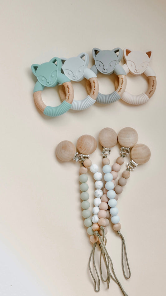 Jade| Silicone + Wood Fox Teether